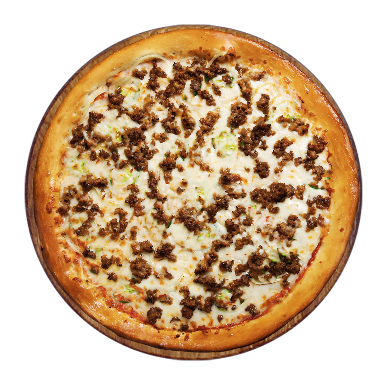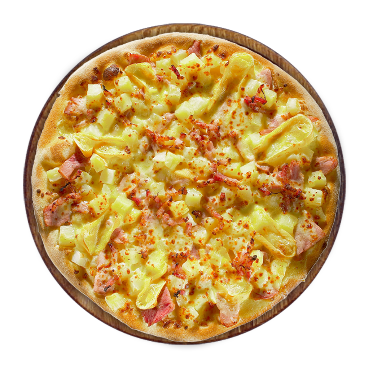 Crème fraîche, mozzarella, lardons, pommes de terre, brie, oignons.