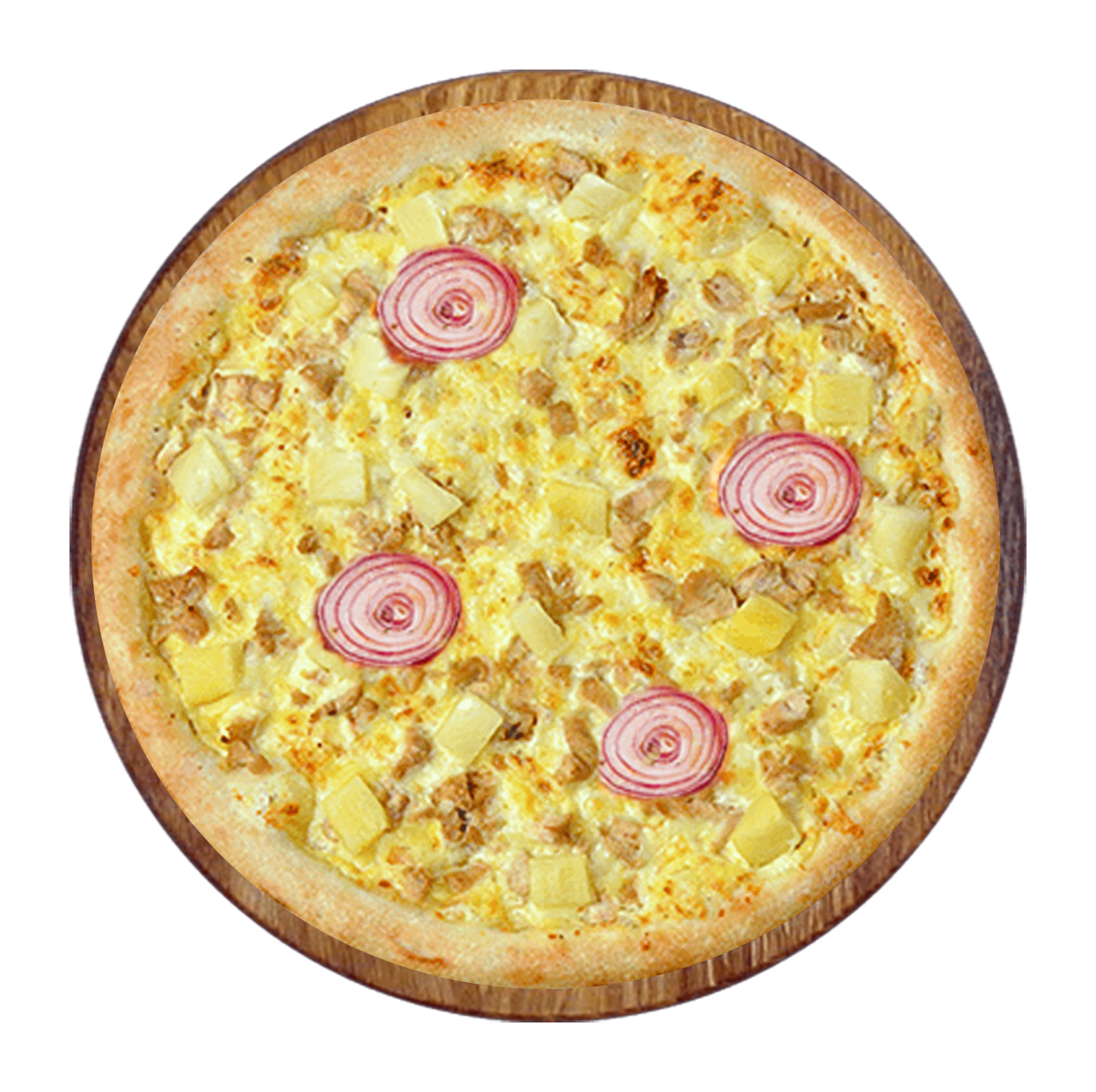 Crème fraîche, mozzarella, poulet, champignons, oeuf, olives.